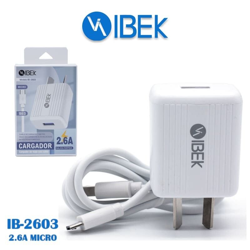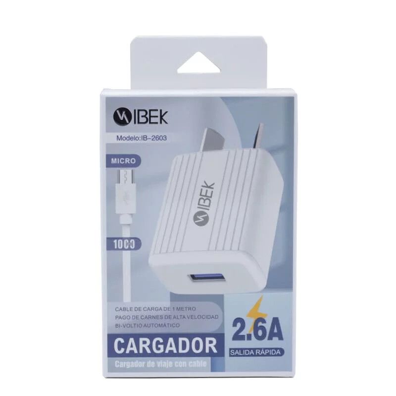 CARGADOR DE PARED IBEK 2.6A CON CABLE [MICROUSB] [IB 2603] [1 PUERTO USB]